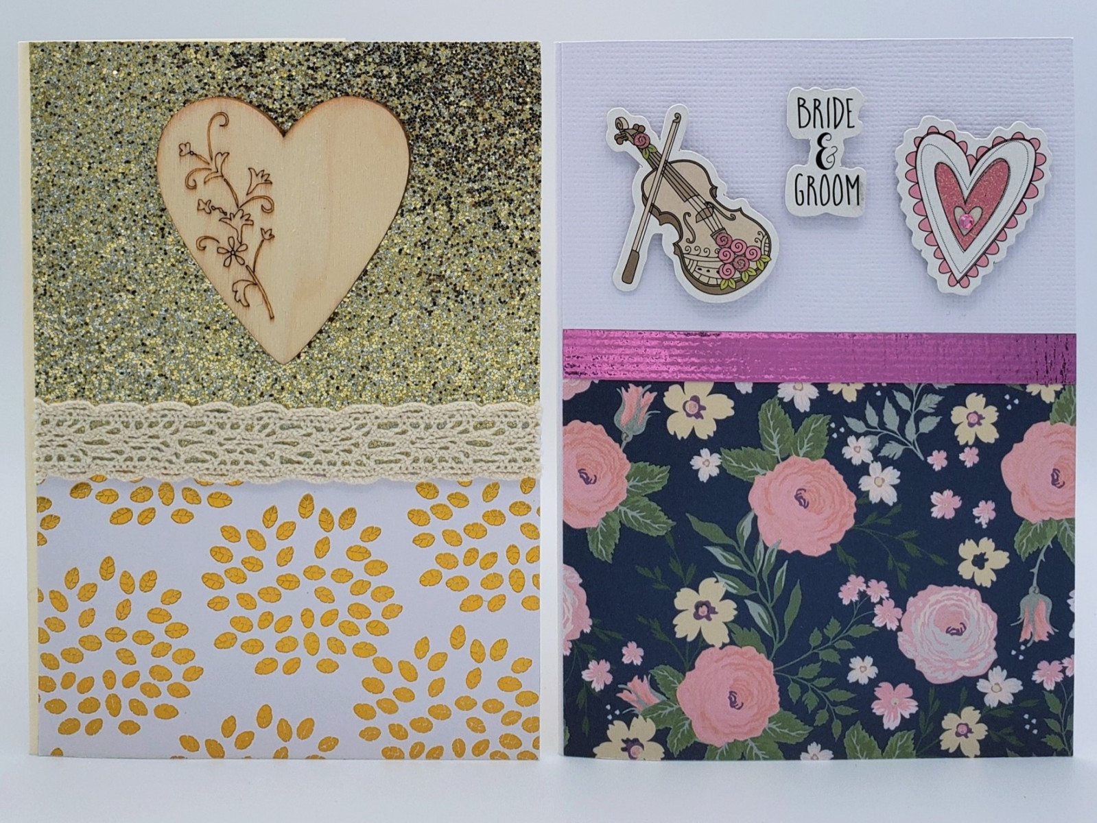 Cards by Crafted Paper Designs feature a mix of prints and solids on white (most common), cream, light pink, light blue, red, kraft or silver card. Our cards have unique decorations made of cardstock, chipboard, paper, wax, jewels, and other materials to create quality designs for every occasion. Included with every card is a matching envelope (based on card colour) and envelope seal. If needed, a card protector is also provided.