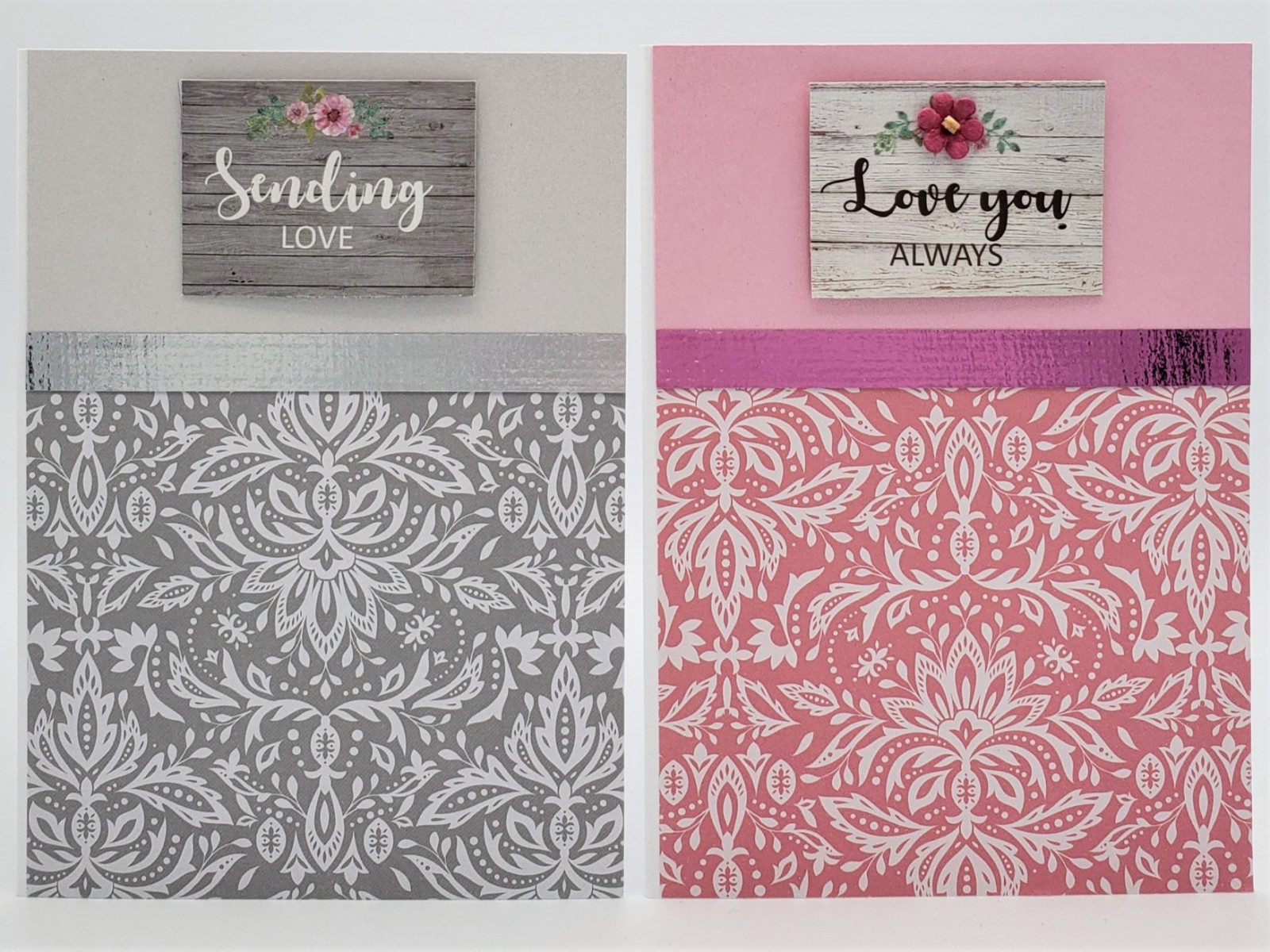 Cards by Crafted Paper Designs feature a mix of prints and solids on white (most common), cream, light pink, light blue, red, kraft or silver card. Our cards have unique decorations made of cardstock, chipboard, paper, wax, jewels, and other materials to create quality designs for every occasion. Included with every card is a matching envelope (based on card colour) and envelope seal. If needed, a card protector is also provided.