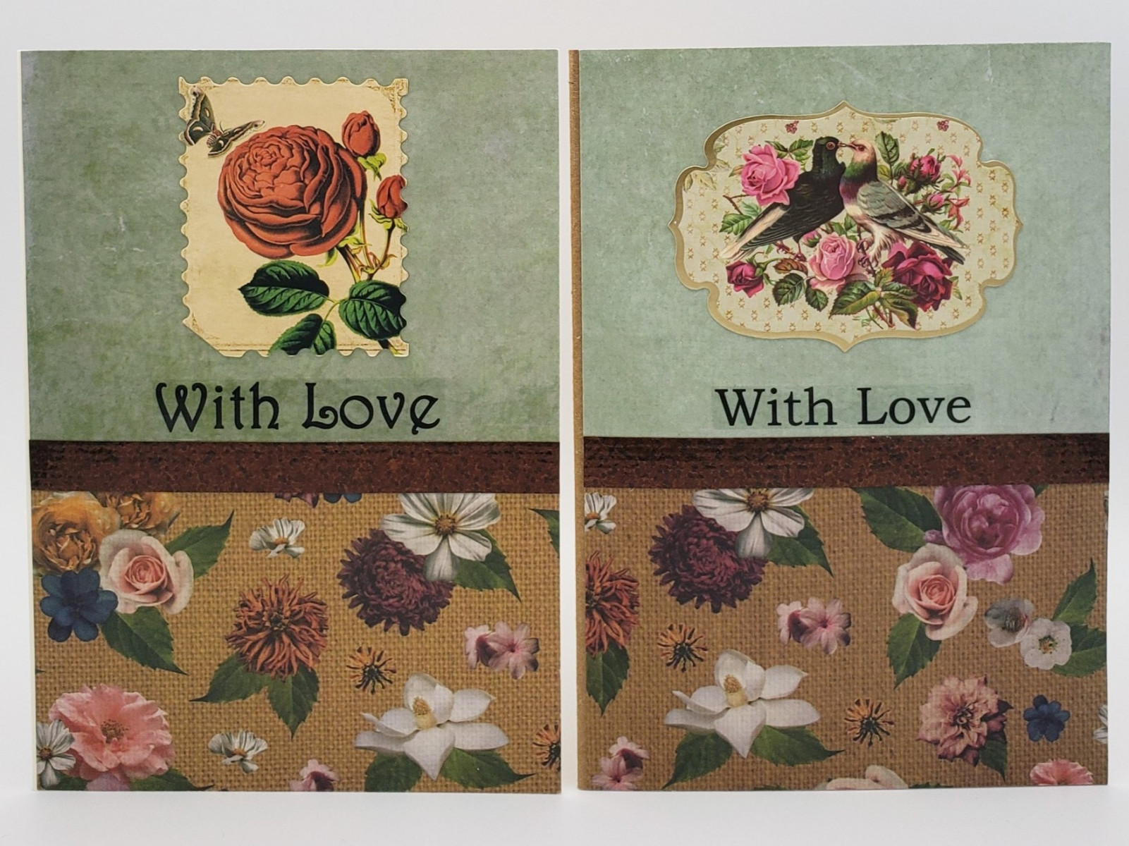 Cards by Crafted Paper Designs feature a mix of prints and solids on white (most common), cream, light pink, light blue, red, kraft or silver card. Our cards have unique decorations made of cardstock, chipboard, paper, wax, jewels, and other materials to create quality designs for every occasion. Included with every card is a matching envelope (based on card colour) and envelope seal. If needed, a card protector is also provided.