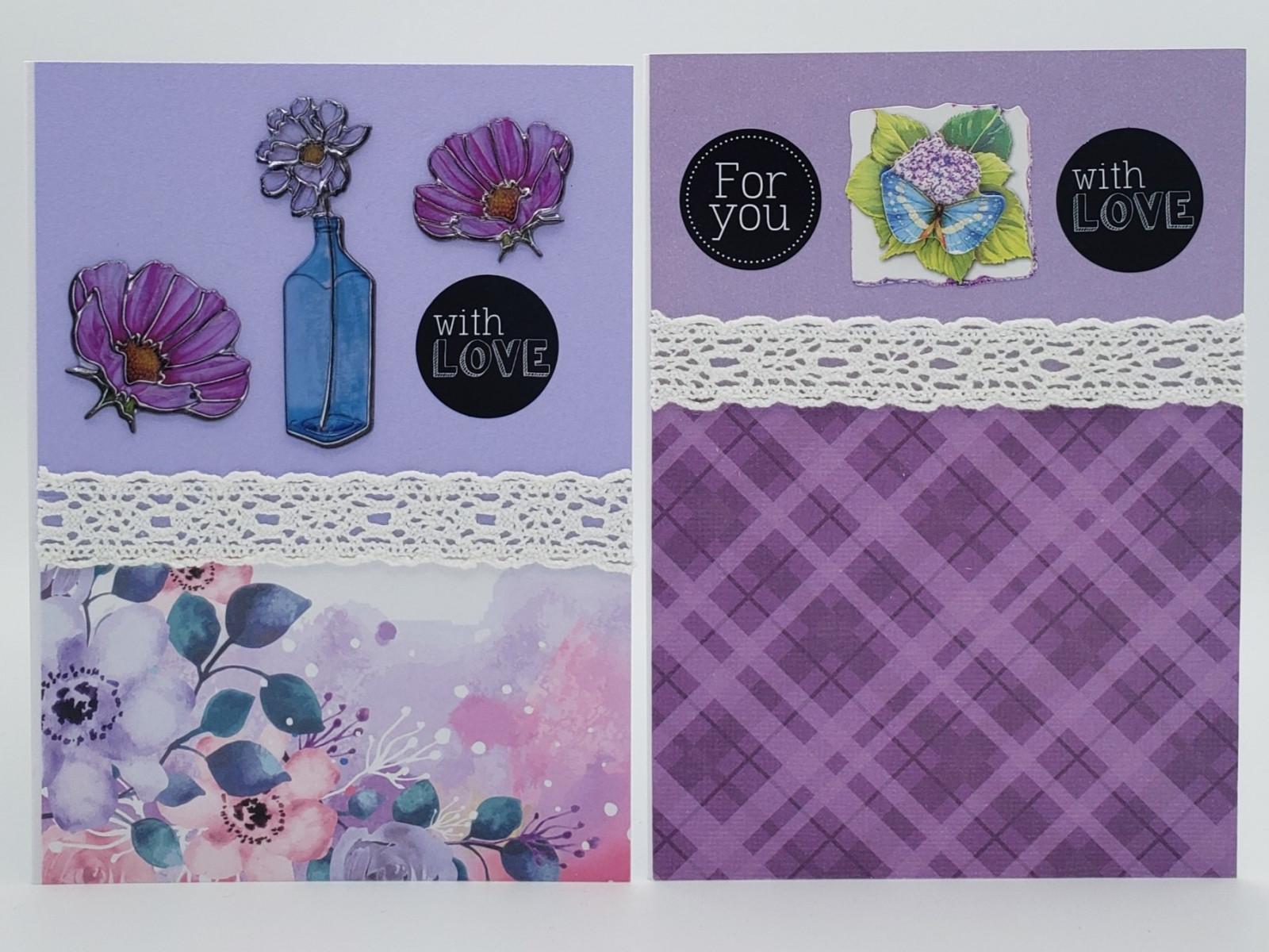 Cards by Crafted Paper Designs feature a mix of prints and solids on white (most common), cream, light pink, light blue, red, kraft or silver card. Our cards have unique decorations made of cardstock, chipboard, paper, wax, jewels, and other materials to create quality designs for every occasion. Included with every card is a matching envelope (based on card colour) and envelope seal. If needed, a card protector is also provided.