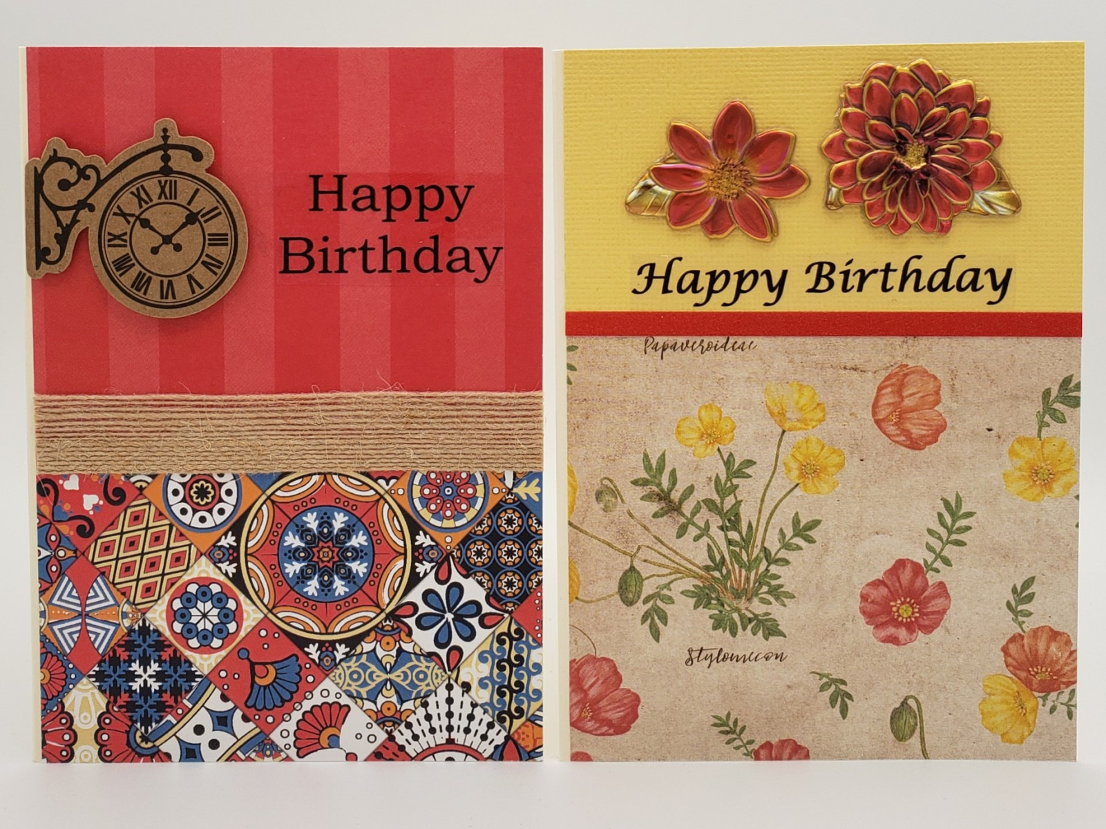 Cards by Crafted Paper Designs feature a mix of prints and solids on white (most common), cream, light pink, light blue, red, kraft or silver card. Our cards have unique decorations made of cardstock, chipboard, paper, wax, jewels, and other materials to create quality designs for every occasion. Included with every card is a matching envelope (based on card colour) and envelope seal. If needed, a card protector is also provided.