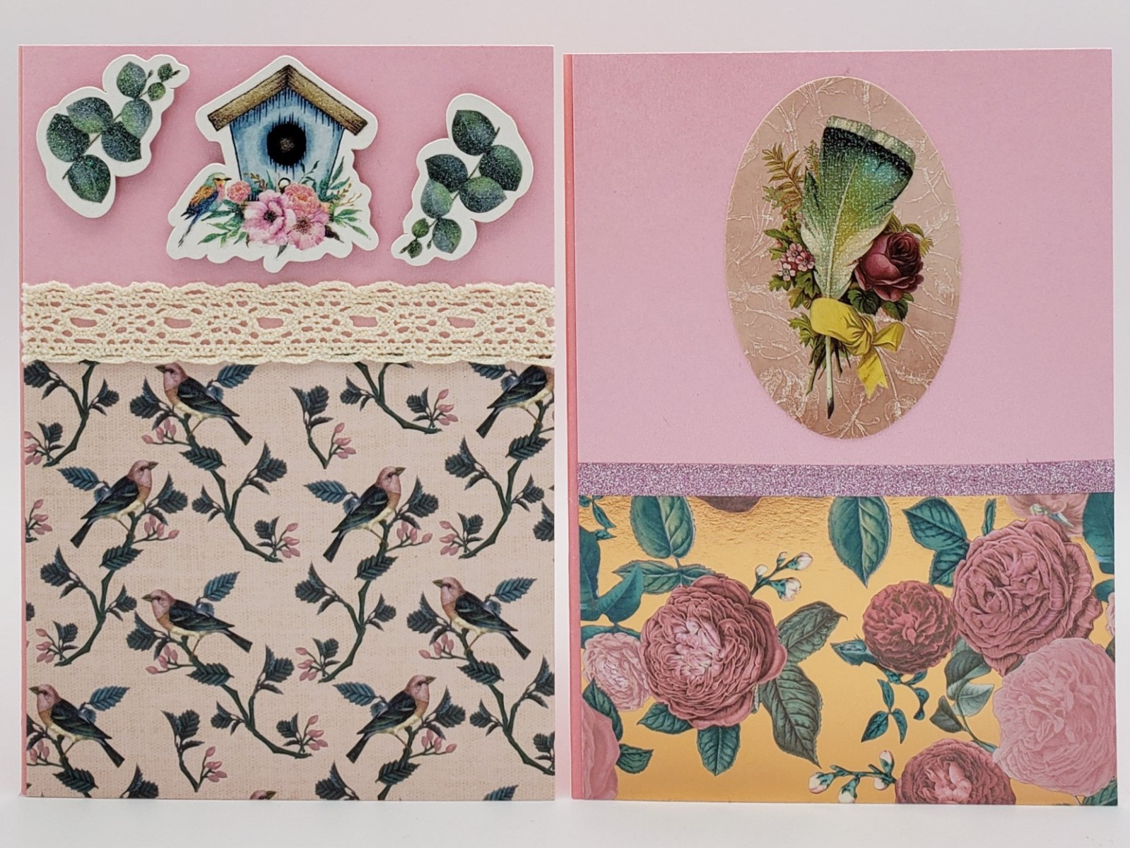 Cards by Crafted Paper Designs feature a mix of prints and solids on white (most common), cream, light pink, light blue, red, kraft or silver card. Our cards have unique decorations made of cardstock, chipboard, paper, wax, jewels, and other materials to create quality designs for every occasion. Included with every card is a matching envelope (based on card colour) and envelope seal. If needed, a card protector is also provided.
