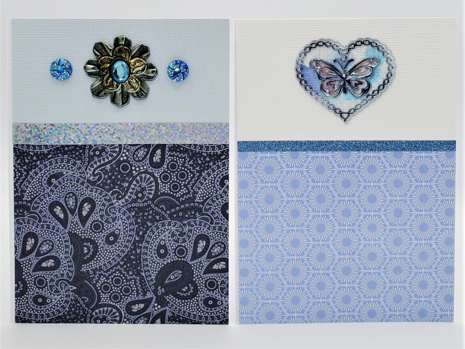 Cards by Crafted Paper Designs feature a mix of prints and solids on white (most common), cream, light pink, light blue, red, kraft or silver card. Our cards have unique decorations made of cardstock, chipboard, paper, wax, jewels, and other materials to create quality designs for every occasion. Included with every card is a matching envelope (based on card colour) and envelope seal. If needed, a card protector is also provided.