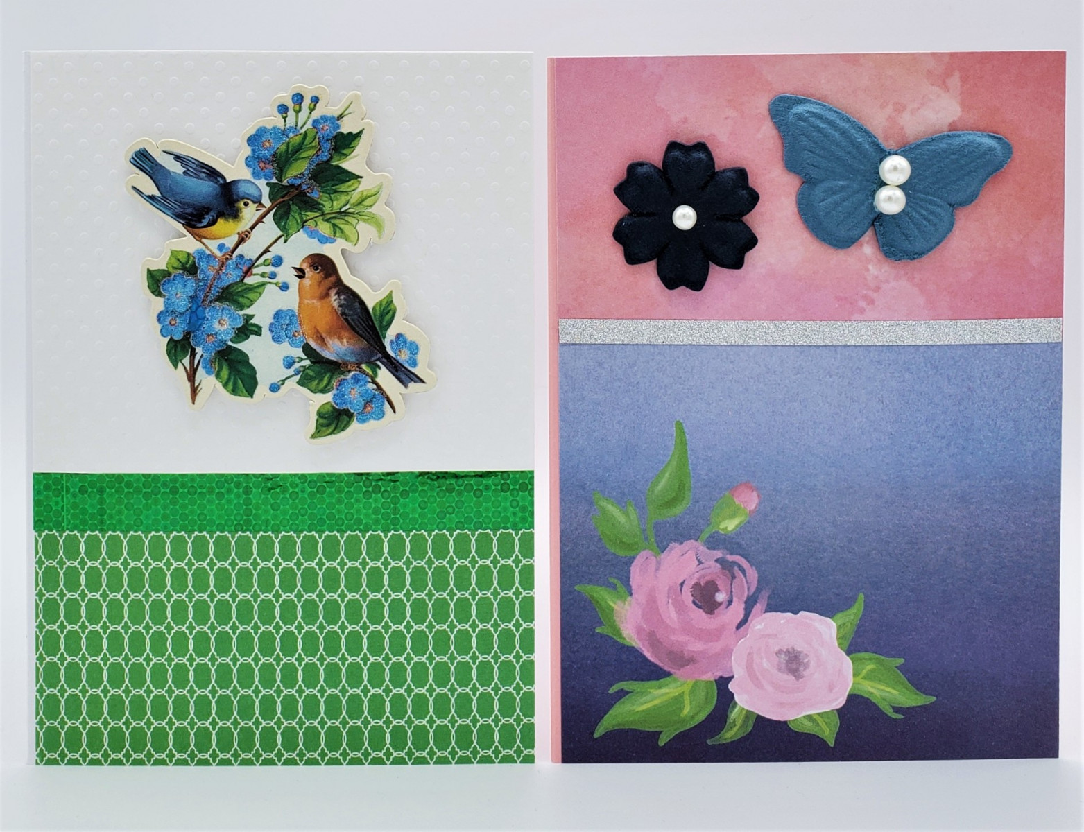 Cards by Crafted Paper Designs feature a mix of prints and solids on white (most common), cream, light pink, light blue, red, kraft or silver card. Our cards have unique decorations made of cardstock, chipboard, paper, wax, jewels, and other materials to create quality designs for every occasion. Included with every card is a matching envelope (based on card colour) and envelope seal. If needed, a card protector is also provided.