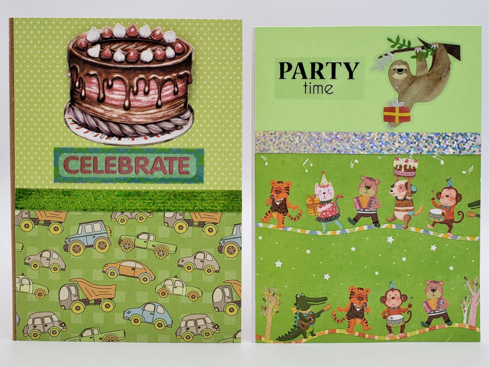 Cards by Crafted Paper Designs feature a mix of prints and solids on white (most common), cream, light pink, light blue, red, kraft or silver card. Our cards have unique decorations made of cardstock, chipboard, paper, wax, jewels, and other materials to create quality designs for every occasion. Included with every card is a matching envelope (based on card colour) and envelope seal. If needed, a card protector is also provided.